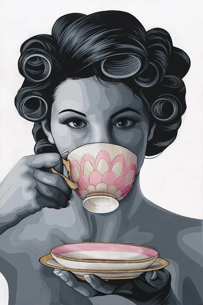 I find inspiration everywhere: the way light shifts across a surface, the depth of a shadow, or a fleeting moment in nature. I started by painting birds and flowers, drawn to their delicate beauty, but lately I’ve been captivated by the bold lines and nostalgic charm of vintage posters and graphic art. My recent work explores themes of beauty, fashion, and female stereotypes—always with an eye for clean aesthetics, rhythm, and movement.